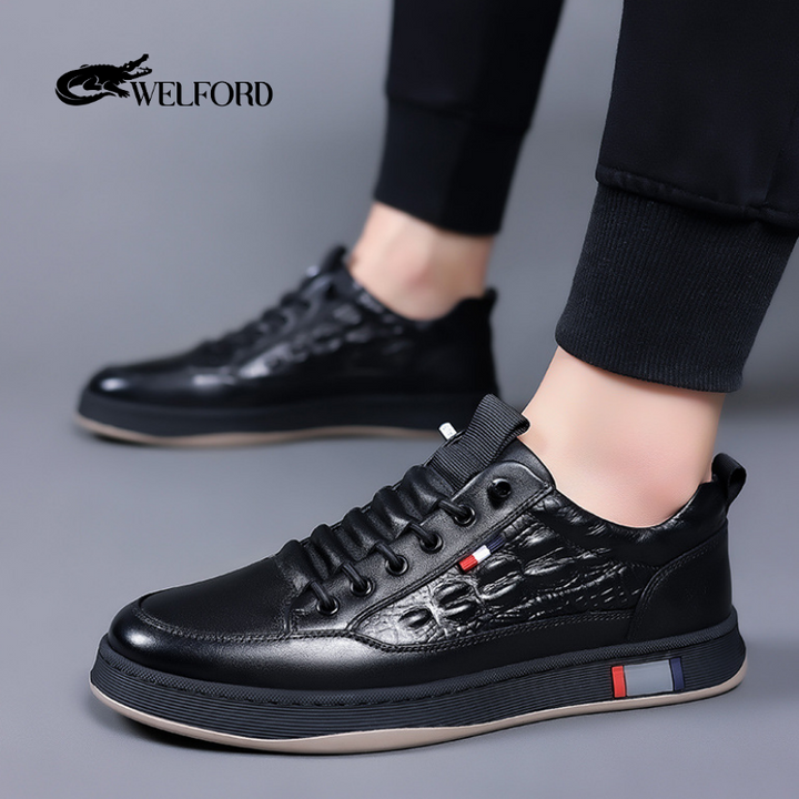 Italian Handmade Crocodile Pattern Leather Sneakers